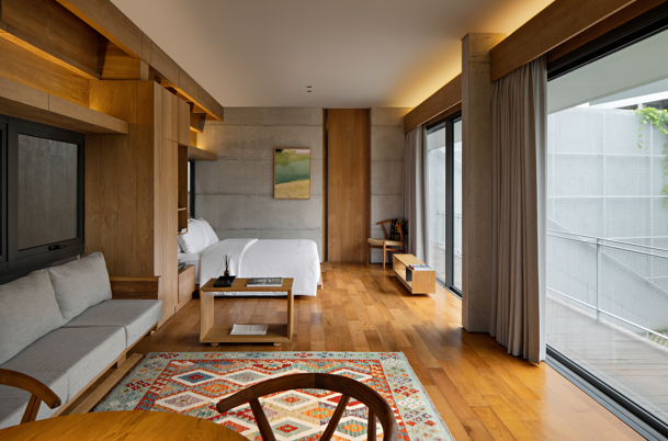 Set across 400 sqm, the villa features two sleek buildings connected by a sky bridge, blending privacy and togetherness. Enjoy your days lounging by the 8-meter pool, sipping drinks at the poolside bar, relaxing on the rooftop garden, or playing table tennis with friends and family.